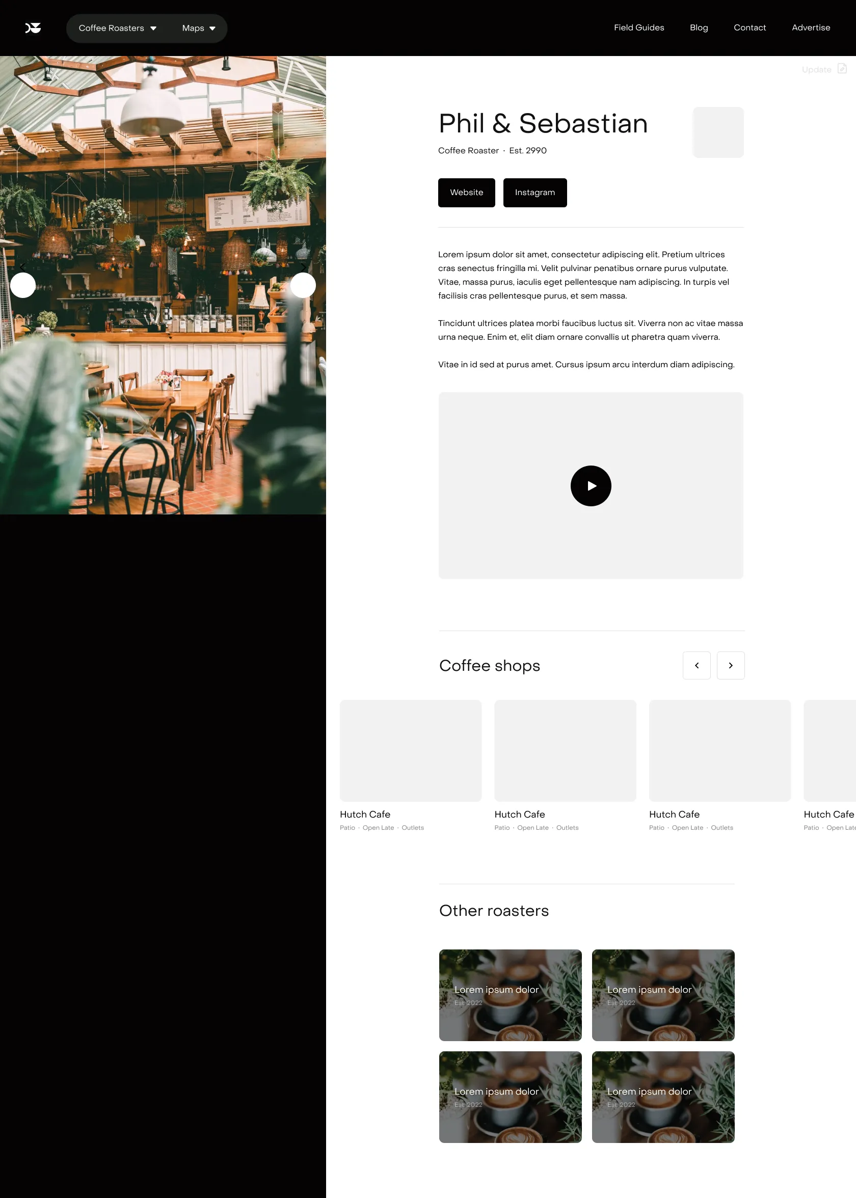 Roast Love is a personal project to help foster the discovery of local coffee roasters in each city around North America. These designs are in initial exploration phase based on wireframes.